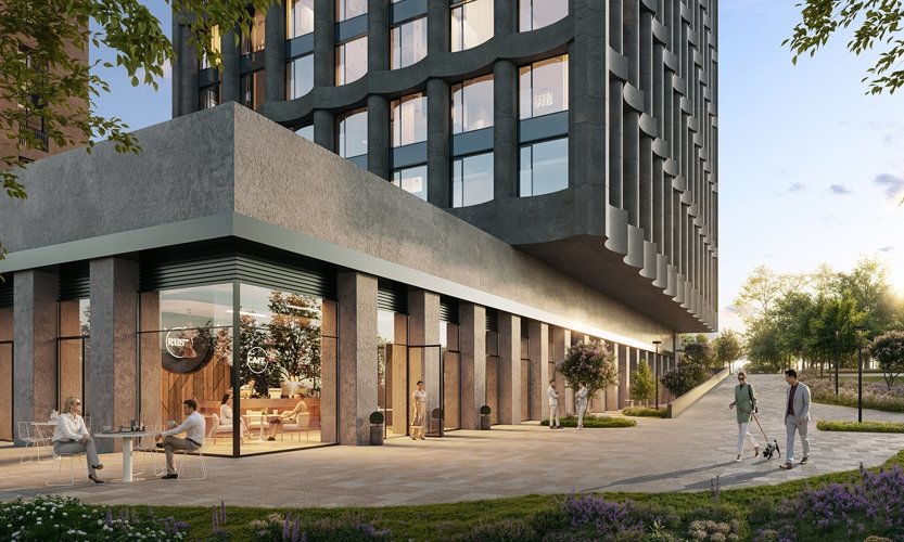 Для МИRА архитекторы спроектировали уличную зону ритейла с прогулочными маршрутами, выходящую к парку на набережной, и закрытый двор с функциональными зонами.