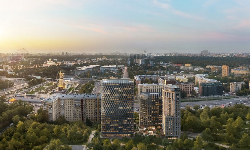 Концепция комплекса разработана бюро Kleinewelt Architekten – в ней отразилось все архитектурное разнообразие района. Новые здания гармонично вписаны в контекст, а решения их фасадов элегантно перекликаются с окружающей застройкой и монументальной архитектурой ВДНХ. Главная идея заключалась в том, чтобы сохранить визуальное единство комплекса при стилевом разнообразии образующих его объектов.