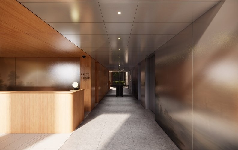 Компактный невысокий корпус, который выходит на проспект мира, бережно продолжает исторический фронт застройки района. Он сомасштабен Дому Жолтовского, расположенному по соседству. Фасад отличается волнообразной формой и ритмом полукруглых колонн.
