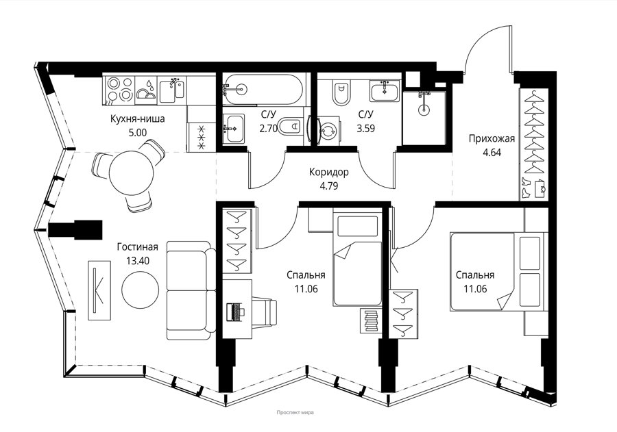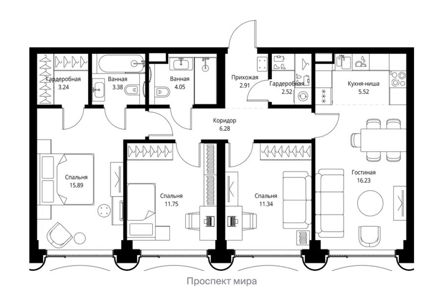 3-комнатная