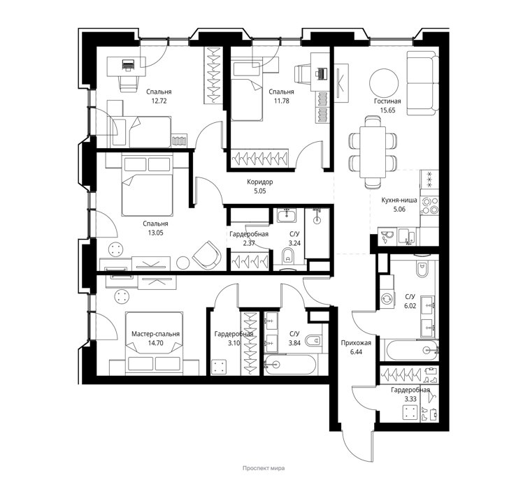 4-комнатная